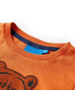Dit t-shirt heeft lange mouwen, een ronde halslijn en een recht model. Op dit donkeroranje kindershirt staat een grote beer. Het kindershirt met lange mouwen is gemaakt van 100% katoen en voelt zacht en comfortabel aan.