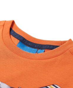 Dit t-shirt heeft lange mouwen, een ronde halslijn en een recht model. Op dit donkeroranje kindershirt staan vliegtuigen afgebeeld. Het kindershirt met lange mouwen is van 100% katoen gemaakt en voelt zacht en comfortabel aan.