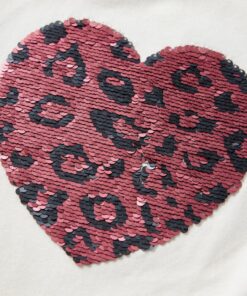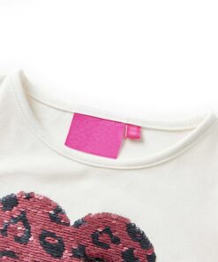 Dit kindershirt heeft lange mouwen, een ronde halslijn en een recht model. Op dit ecru kindershirt is een glinsterend hart van pailletten afgebeeld. Het kindershirt met lange mouwen is gemaakt van zacht materiaal met 95% katoen en 5% elastaan voor extra comfort en ademend vermogen.