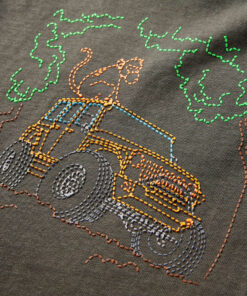 Dit t-shirt heeft lange mouwen, een ronde halslijn en een recht model. Op dit kakikleurige T-shirt staat een terreinwagen en een aap in het bos afgebeeld. Het kindershirt met lange mouwen is gemaakt van 100% katoen dat met een silicone- en enzymwassing is behandeld, zodat hij zacht en comfortabel aanvoelt.