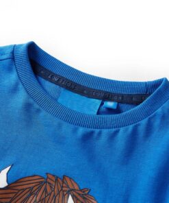 Dit kindershirt heeft lange mouwen, een ronde halslijn en een recht model. Dit kobaltblauwe t-shirt is heeft een dierenprint. Het kindershirt met lange mouwen is gemaakt van 100% katoen dat is behandeld met een siliconen- en enzymenwas voor een zachte en comfortabele touch.
