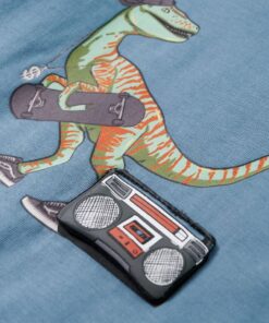 Dit t-shirt heeft lange mouwen, een ronde halslijn en een recht model. Op dit medium blauwe T-shirt staat een dinosaurus met modieuze kleding en een sportuitrusting afgebeeld. Het kindershirt met lange mouwen is gemaakt van 100% katoen dat met een silicone- en enzymwassing is behandeld, zodat hij zacht en comfortabel aanvoelt.