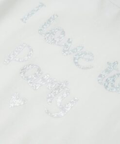 Dit kindershirt heeft ruches aan de mouwen, een ronde halslijn en een recht model. Dankzij de glitterprint ziet het kindershirt er elegant en mooi uit. Het kindershirt met korte mouwen is gemaakt van 95% katoen en 5% elastaan, waardoor het zacht en comfortabel aanvoelt.