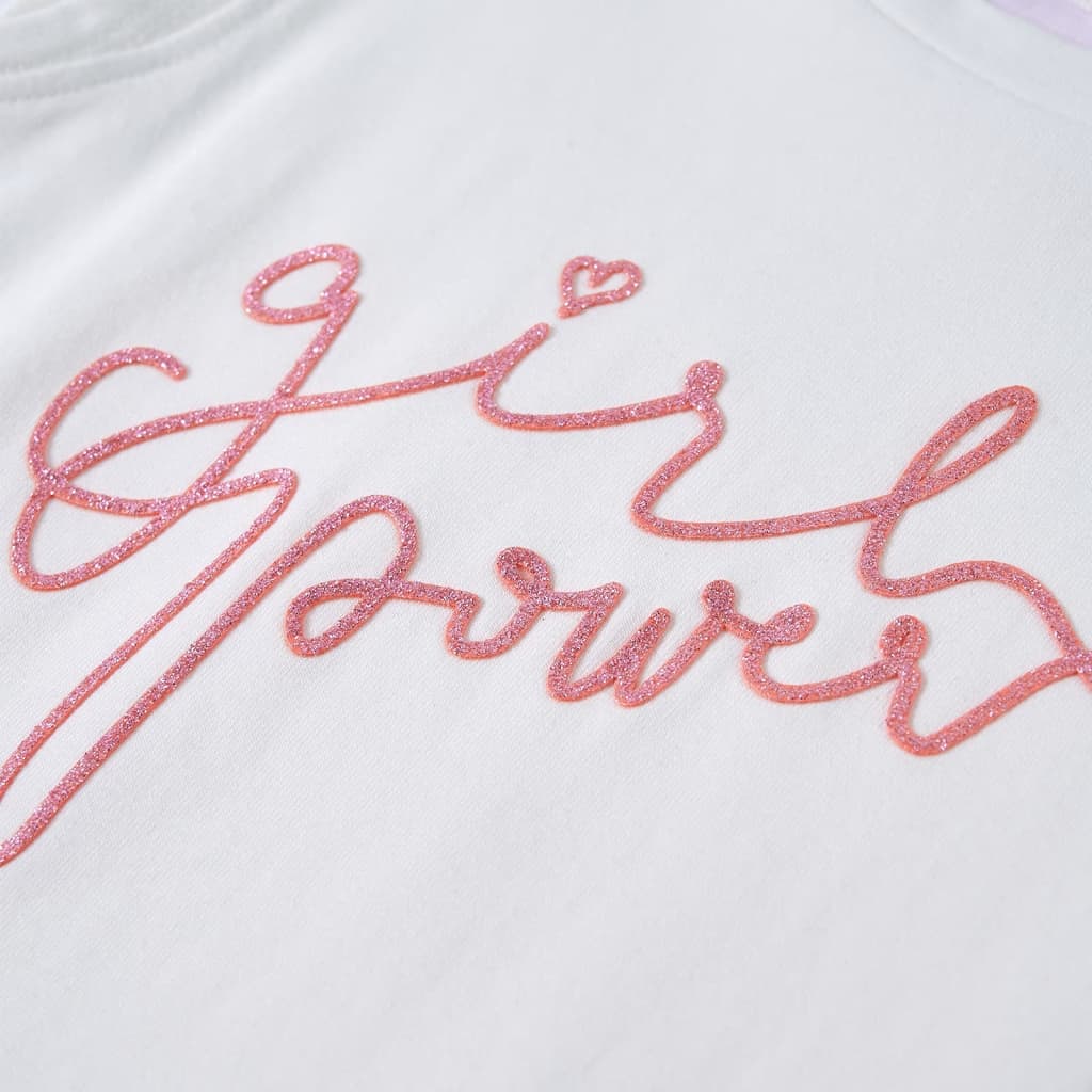 Dit kindershirt heeft korte mouwen, een ronde halslijn en leuke ruches. Dankzij de mooie ruches en glitterprint ziet het kindershirt er elegant en mooi uit. Het kindershirt met korte mouwen is gemaakt van zacht materiaal met 95% katoen en 5% elastaan, waardoor het extra comfortabel en ademend is.