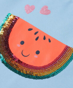 Kindershirt met ruches aan de mouwen 140 lichtblauw