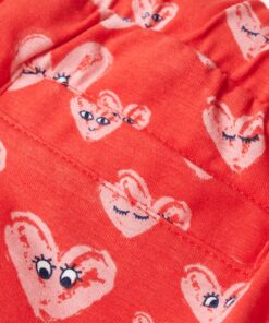 Deze korte broek voor kinderen heeft een elastische tailleband met trekkoord en een paspelzak aan de achterkant. Op deze kindershorts staan allemaal hartjes afgebeeld. De korte broek voor kinderen is gemaakt van zacht materiaal met 95% katoen en 5% elastaan, waardoor hij comfortabel en ademend is.