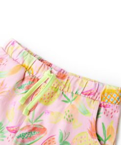 Deze korte broek voor kinderen heeft een elastische tailleband met trekkoord, 2 zijzakken en een paspelzak aan de achterkant. Op deze kindershorts staan allemaal vruchten afgebeeld. De korte broek is gemaakt van zacht materiaal met 92% katoen en 8% elastaan, waardoor hij comfortabel en ademend is.