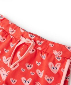 Deze korte broek voor kinderen heeft een elastische tailleband met trekkoord en een paspelzak aan de achterkant. Op deze kindershorts staan allemaal hartjes afgebeeld. De korte broek voor kinderen is gemaakt van zacht materiaal met 95% katoen en 5% elastaan, waardoor hij comfortabel en ademend is.