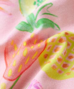Deze korte broek voor kinderen heeft een elastische tailleband met trekkoord, 2 zijzakken en een paspelzak aan de achterkant. Op deze kindershorts staan allemaal vruchten afgebeeld. De korte broek is gemaakt van zacht materiaal met 92% katoen en 8% elastaan, waardoor hij comfortabel en ademend is.