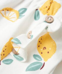 Deze kindershort heeft een elastische tailleband en is met 3 knopen versierd. Op deze kindershorts staan allemaal citroenen afgebeeld. De kindershorts is gemaakt van zacht materiaal met 100% katoen, waardoor hij comfortabel en ademend is.