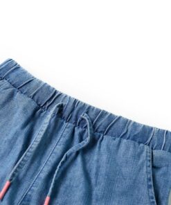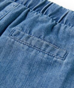 Deze kindershort heeft een elastische tailleband met trekkoord en een nepachterzak. De kindershort is denimblauw, wat modieus is en bij elke andere kleur kleding past. De kindershorts is gemaakt van zacht materiaal met 100% katoen, waardoor hij comfortabel en ademend is.