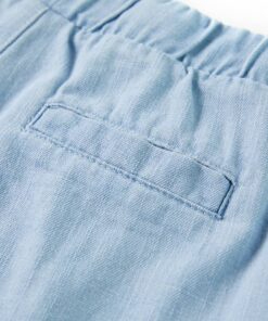 Deze kindershort heeft een elastische tailleband met trekkoord en een nepachterzak. De kindershort is lichtdenimblauw, wat modieus is en bij elke andere kleur kleding past. De kindershorts is gemaakt van zacht materiaal met 100% katoen, waardoor hij comfortabel en ademend is.