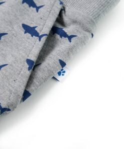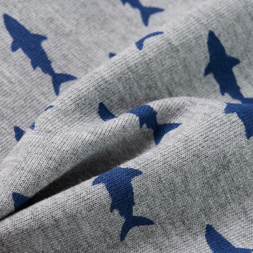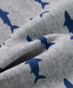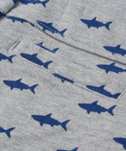 De kindershort heeft een patroon van haaien. Deze korte broek voor kinderen heeft een elastische tailleband met trekkoord, een nep achterzak, 2 zijzakken en ingenaaide omslagen aan de zoom. De kindershorts is gemaakt van zacht materiaal met 90% katoen en 10% viscose, waardoor hij comfortabel en ademend is.