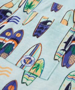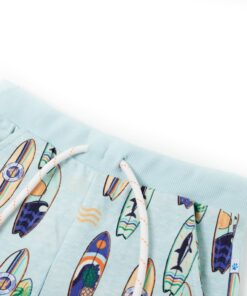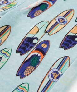 Deze korte broek voor kinderen heeft een elastische tailleband met trekkoord, een achterzak, 2 zijzakken en ingenaaide omslagen aan de zoom. Deze kindershorts heeft een patroon van kleurrijke surfborden. De kindershorts is gemaakt van zacht materiaal met 100% katoen, waardoor hij comfortabel en ademend is.