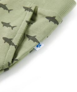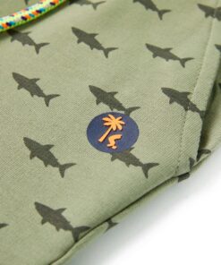 De kindershort heeft een patroon van haaien. Deze korte broek voor kinderen heeft een elastische tailleband met trekkoord, een nep achterzak, 2 zijzakken en ingenaaide omslagen aan de zoom. De kindershorts is gemaakt van zacht materiaal met 100% katoen, waardoor hij comfortabel en ademend is.