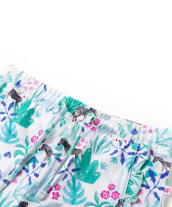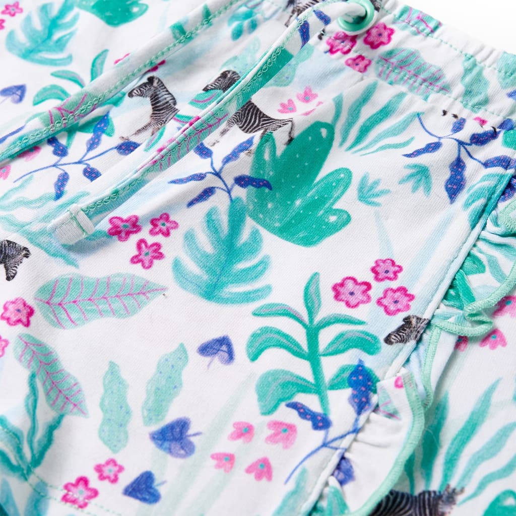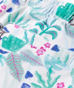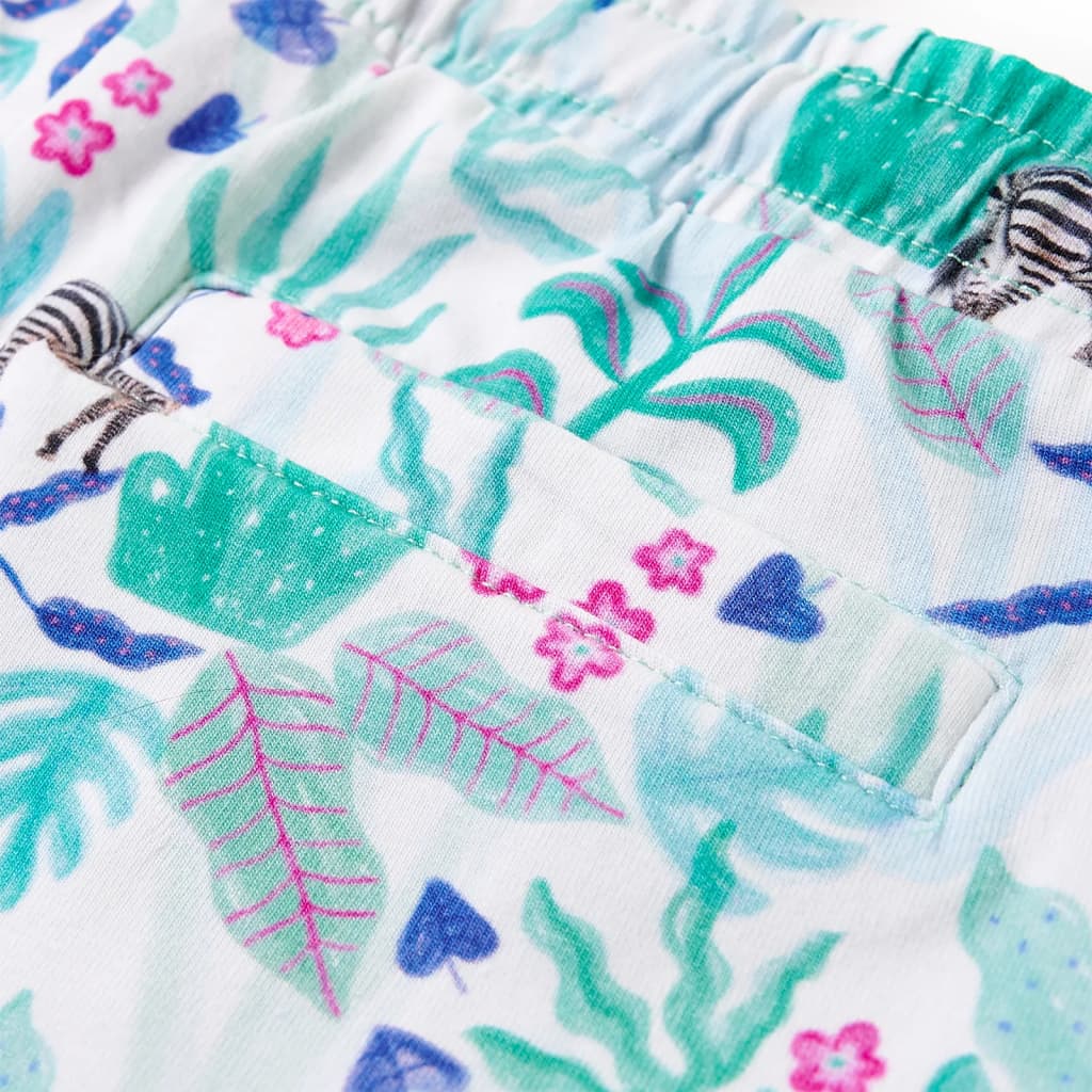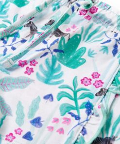 Deze korte broek voor kinderen heeft een elastische tailleband met trekkoord, een achterzak en leuke rushes. Deze kindershorts zijn met zebra’s en planten bedrukt. De kindershort is van zacht materiaal gemaakt met onder andere 94% katoen en 6 % elastaan voor comfort en ademend vermogen.