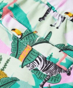 Deze korte broek voor kinderen heeft een elastische tailleband met trekkoord en 2 steekzakken. Op deze kindershorts staan allemaal dieren en planten afgebeeld. De korte broek is gemaakt van zacht materiaal met 92% katoen en 8% elastaan, waardoor hij comfortabel en ademend is.