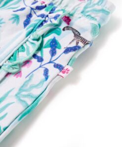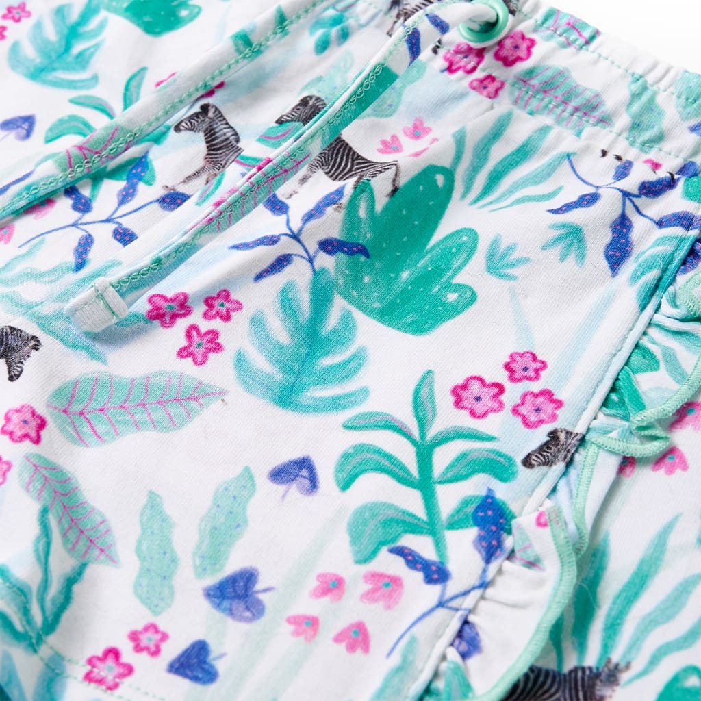 Deze korte broek voor kinderen heeft een elastische tailleband met trekkoord, een achterzak en leuke rushes. Deze kindershorts zijn met zebra’s en planten bedrukt. De kindershort is gemaakt van zacht materiaal met onder andere 94% katoen en 6 % elastaan voor comfort en ademend vermogen.