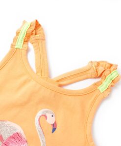 Deze kindertop heeft elastische schouderbandjes en een rechte pasvorm. Dankzij de flamingo van glitters ziet het kindershirt er elegant en mooi uit. De kindertop is gemaakt van 95% katoen en 5% elastaan, waardoor hij zacht en comfortabel aanvoelt.