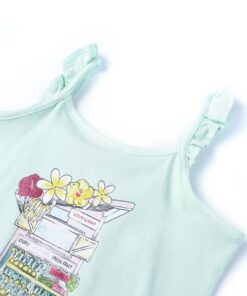 Deze kindertop heeft leuke rushes aan de schouderbandjes en een rechte pasvorm. Op de voorkant van het kindertopje staat een fruitkraampje afgebeeld. De kindertop is gemaakt van katoen en elastaan, waardoor hij zacht en comfortabel aanvoelt.