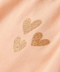 Deze kindertop heeft elastische schouderbandjes en een rechte pasvorm. Dankzij de hartjes van glitters ziet het kindershirt er elegant en mooi uit. De kindertop is gemaakt van 95% katoen en 5% elastaan, waardoor hij zacht en comfortabel aanvoelt.