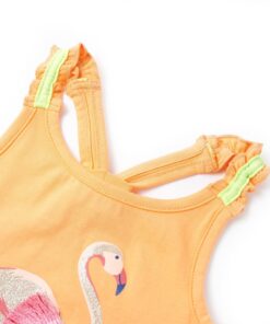 Deze kindertop heeft elastische schouderbandjes en een rechte pasvorm. Dankzij de flamingo van glitters ziet het kindershirt er elegant en mooi uit. De kindertop is gemaakt van 95% katoen en 5% elastaan, waardoor hij zacht en comfortabel aanvoelt.