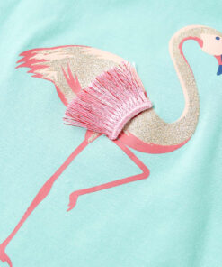 Deze kindertanktop heeft elastische schouderbandjes en een rechte pasvorm. Dankzij de flamingo van glitters ziet het kindershirt er elegant en mooi uit. De kindertop is gemaakt van 95% katoen en 5% elastaan, waardoor hij zacht en comfortabel aanvoelt.