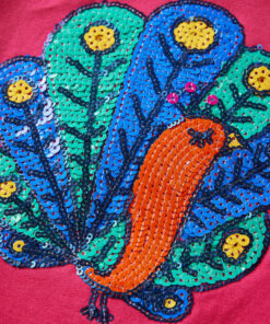 Deze trui voor kinderen heeft lange mouwen, een ronde hals en geribbelde randen aan de manchetten, halslijn en onderkant. Op de trui staat een glinsterende pauw van pailletten. De trui is gemaakt van 95% katoen en 5% elastaan, waardoor hij comfortabel is en een ademend vermogen heeft.