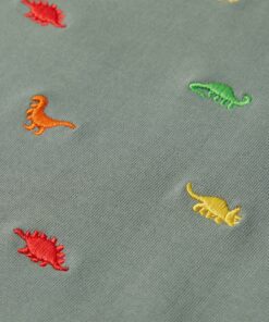 Deze trui voor kinderen heeft lange mouwen, een ronde hals en geribbelde randen aan de manchetten, halslijn en onderkant. Op deze kindertrui staan verschillende soorten dinosaurussen geborduurd. De trui is gemaakt van 100% gekamd katoen, waardoor hij zacht en comfortabel aanvoelt.