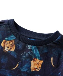 Deze trui voor kinderen heeft lange mouwen, een ronde hals en geribbelde randen aan de manchetten, halslijn en onderkant. Op deze kindertrui staan allemaal leeuwen en planten afgebeeld. De kindertrui is gemaakt van zacht materiaal met 95% katoen en 5% elastaan, waardoor hij comfortabel en ademend is. De zachte voering zorgt voor extra warmte.
