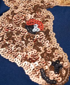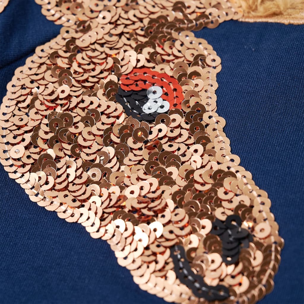 Deze trui voor kinderen heeft lange mouwen, een ronde hals en geribbelde randen aan de manchetten, halslijn en onderkant. Deze kindertrui heeft een mooie marineblauwe kleur. Om het extra leuk te maken staat er op één mouw een giraf van pailletten afgebeeld. De trui is gemaakt van 95% katoen en 5% elastaan, waardoor hij comfortabel is en een ademend vermogen heeft. De zachte fleecevoering zorgt voor extra warmte.