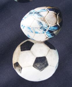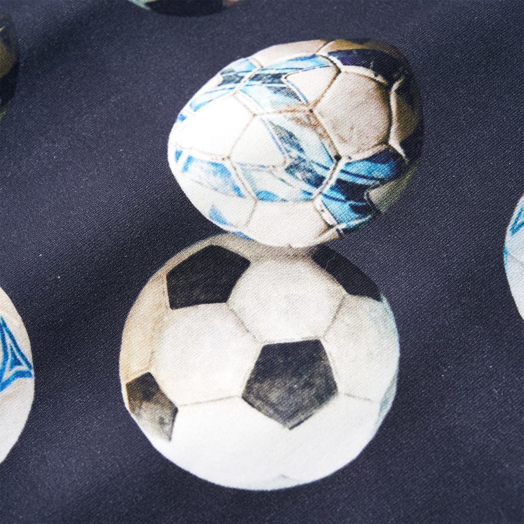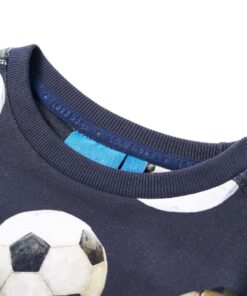 Deze trui voor kinderen heeft lange mouwen, een ronde hals en geribbelde randen aan de manchetten, halslijn en onderkant. Op deze trui staan voetballen afgebeeld. De kindertrui is gemaakt van 95% katoen en 5% elastaan dat met een siliconen- en enzymwasbeurt is behandeld, zodat hij zacht en comfortabel aanvoelt.