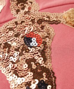 Deze trui voor kinderen heeft lange mouwen, een ronde hals en geribbelde randen aan de manchetten, halslijn en onderkant. Deze kindertrui heeft een mooie oudroze kleur. Om het extra leuk te maken staat er op één mouw een giraf van pailletten afgebeeld. De trui is gemaakt van 95% katoen en 5% elastaan, waardoor hij comfortabel is en een ademend vermogen heeft. De zachte fleecevoering zorgt voor extra warmte.