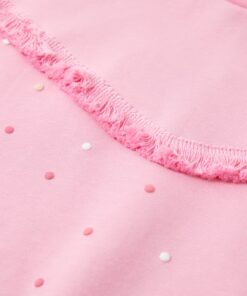 Deze kindertrui heeft een ronde hals en lange mouwen en heeft een ontwerp met kleurrijke stippen en franjes. Deze roze kindertrui is gemaakt van 95% katoen en 5% elastaan en voelt zacht en comfortabel aan.