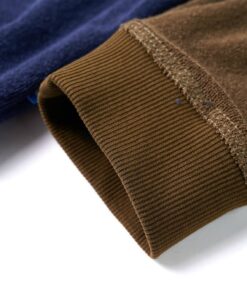 Deze trui voor kinderen heeft lange mouwen, een ronde hals en geribbelde randen aan de manchetten, halslijn en onderkant. Dit donkermarineblauwe sweatshirt heeft een patchwork-ontwerp en een “YO!” logo. De kindertrui is gemaakt van 85% katoen en 15% polyester, waardoor hij comfortabel en ademend is.