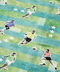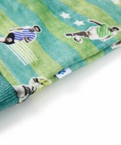 Deze kindertrui heeft lange mouwen, een ronde hals en geribbelde randen aan de manchetten, halslijn en onderkant. De trui is gemaakt van 95% katoen en 5% elastaan, waardoor hij comfortabel is en een ademend vermogen heeft. Dankzij de zachte fleecevoering is de kindertrui extra warm. De kindertrui heeft een patroon van spelende voetballers.