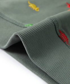Deze trui voor kinderen heeft lange mouwen, een ronde hals en geribbelde randen aan de manchetten, halslijn en onderkant. Op deze kindertrui staan verschillende soorten dinosaurussen geborduurd. De trui is gemaakt van 100% gekamd katoen, waardoor hij zacht en comfortabel aanvoelt.