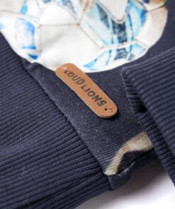 Deze trui voor kinderen heeft lange mouwen, een ronde hals en geribbelde randen aan de manchetten, halslijn en onderkant. Op deze trui staan voetballen afgebeeld. De kindertrui is gemaakt van 95% katoen en 5% elastaan dat met een siliconen- en enzymwasbeurt is behandeld, zodat hij zacht en comfortabel aanvoelt.