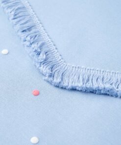 Deze kindertrui heeft een ronde hals en lange mouwen en heeft een ontwerp met kleurrijke stippen en franjes. Deze blauwe kindertrui is gemaakt van 95% katoen en 5% elastaan en voelt zacht en comfortabel aan.