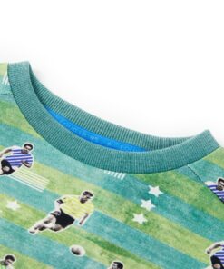 Deze kindertrui heeft lange mouwen, een ronde hals en geribbelde randen aan de manchetten, halslijn en onderkant. De trui is gemaakt van 95% katoen en 5% elastaan, waardoor hij comfortabel is en een ademend vermogen heeft. Dankzij de zachte fleecevoering is de kindertrui extra warm. De kindertrui heeft een patroon van spelende voetballers.