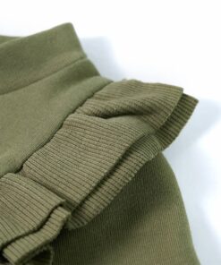 Deze trui voor kinderen heeft lange mouwen, een ronde hals en geribbelde randen aan de manchetten, halslijn en onderkant. Op deze kindertrui staan glinsterende hartjes afgebeeld en hij heeft leuke ruches. De kindertrui is gemaakt van katoen en elastaan, waardoor hij comfortabel en ademend is.
