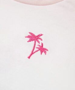 Dit kindersweatshirt heeft een ronde halslijn en lange mouwen en op de borst staat een palmboom afgebeeld. Deze lichtroze kindertrui met capuchon is gemaakt van 95% katoen en 5% elastaan en voelt zacht en comfortabel aan.