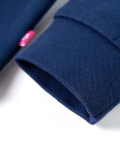 Deze trui voor kinderen heeft lange mouwen, een ronde hals en geribbelde randen aan de manchetten, halslijn en onderkant. Deze kindertrui heeft een mooie marineblauwe kleur. Om het extra leuk te maken staat er op één mouw een giraf van pailletten afgebeeld. De trui is gemaakt van 95% katoen en 5% elastaan, waardoor hij comfortabel is en een ademend vermogen heeft. De zachte fleecevoering zorgt voor extra warmte.