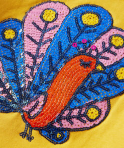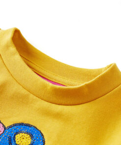 Deze kindertrui heeft lange mouwen, een ronde hals en ribgebreide randen aan de manchetten, halslijn en onderkant. Op de kindertrui is een pauw met glinsterende pailletten afgedrukt. Hij is gemaakt van 95% katoen en 5% elastaan voor comfort en ademend vermogen.