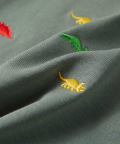 Deze trui voor kinderen heeft lange mouwen, een ronde hals en geribbelde randen aan de manchetten, halslijn en onderkant. Op deze kindertrui staan verschillende soorten dinosaurussen geborduurd. De trui is gemaakt van 100% gekamd katoen, waardoor hij zacht en comfortabel aanvoelt.