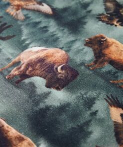 Deze trui voor kinderen heeft lange mouwen, een ronde hals en geribbelde randen aan de manchetten, halslijn en onderkant. Op de kindertrui staan allemaal runderen, adelaars en bos afgebeeld. De kindertrui is gemaakt van zacht materiaal met 95% katoen en 5% elastaan, waardoor hij comfortabel en ademend is.