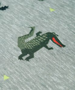 Deze trui voor kinderen heeft lange mouwen, een ronde hals en geribbelde randen aan de manchetten, halslijn en onderkant. De kindertrui is gemaakt van 95% katoen en 5% elastaan, waardoor hij comfortabel en ademend is. De kindertrui heeft een patroon van krokodillen.