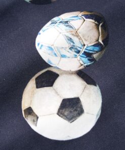 Deze trui voor kinderen heeft lange mouwen, een ronde hals en geribbelde randen aan de manchetten, halslijn en onderkant. Op deze trui staan voetballen afgebeeld. De kindertrui is gemaakt van 95% katoen en 5% elastaan dat met een siliconen- en enzymwasbeurt is behandeld, zodat hij zacht en comfortabel aanvoelt.