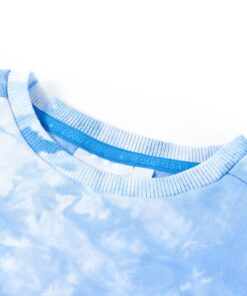 Deze trui voor kinderen heeft lange mouwen, een ronde hals en geribbelde randen aan de manchetten, halslijn en onderkant. Op deze kindertrui is een kleurrijk patroon van blauw en wit te zien. De trui is gemaakt van 85 % katoen en 15% polyester, waardoor hij comfortabel is en een ademend vermogen heeft.