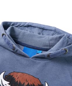 Deze kindertrui met capuchon heeft lange mouwen en geribbelde machetten en zoom. Op deze kindertrui staat een os afgebeeld met een rits als mond. Open de rits om de tong te zien. De kindertrui met capuchon is gemaakt van 95% katoen en 5% elastaan, waardoor hij zacht en comfortabel aanvoelt. De zachte fleecevoering zorgt voor extra warmte.